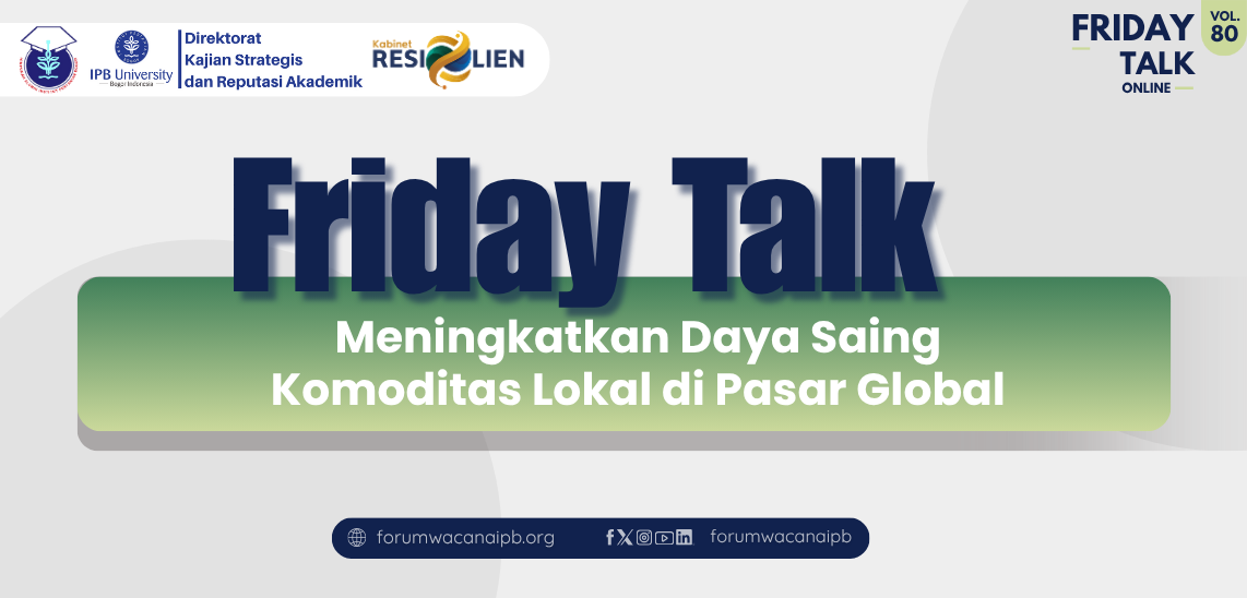 Melalui Friday Talk Vol. 80, kita akan menelusuri strategi dan kebijakan dalam memperkuat posisi komoditas lokal di pasar global, mulai dari advokasi kebijakan, digitalisasi pasar, hingga pemberdayaan desa sebagai basis inovasi ekonomi.
